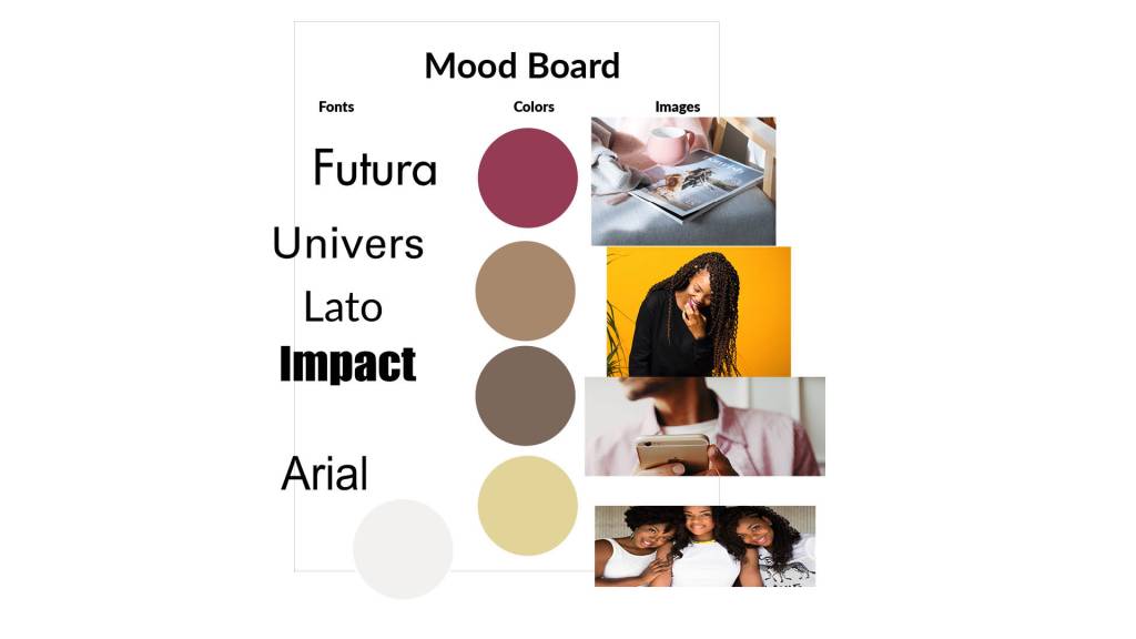 I made my mood board in a way that would fit the Millennial aesthetic. I chose fonts that were sans serif because Millennials are very specific when it comes to fonts. They want a font that is Contemporary, Fresh, Adventurous, Modern, Approachable, and Clean. I matched it thoughtfully with the color because it is one of the most emotional elements of design. I chose the muted colors pink, tan, brown, beige, and white to show a mindful vibe. The colors had a calming presence which I think will appeal to the stress-free vibe that the target audience is looking for. I chose images that were very specific to the target audience’s needs and also fit my color scheme. I wanted the pictures to feel unique while also engaging and interactive.
